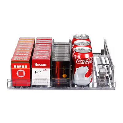 The combined pusher tray earns some edges like competitive price, adjustable width, and easy assembly. it can accommodate packed cigarettes, drinks, food, cosmetics, and medicine. The pusher width includes 14mm, 18mm, 25mm, 36mm, 50mm, and 60mm.